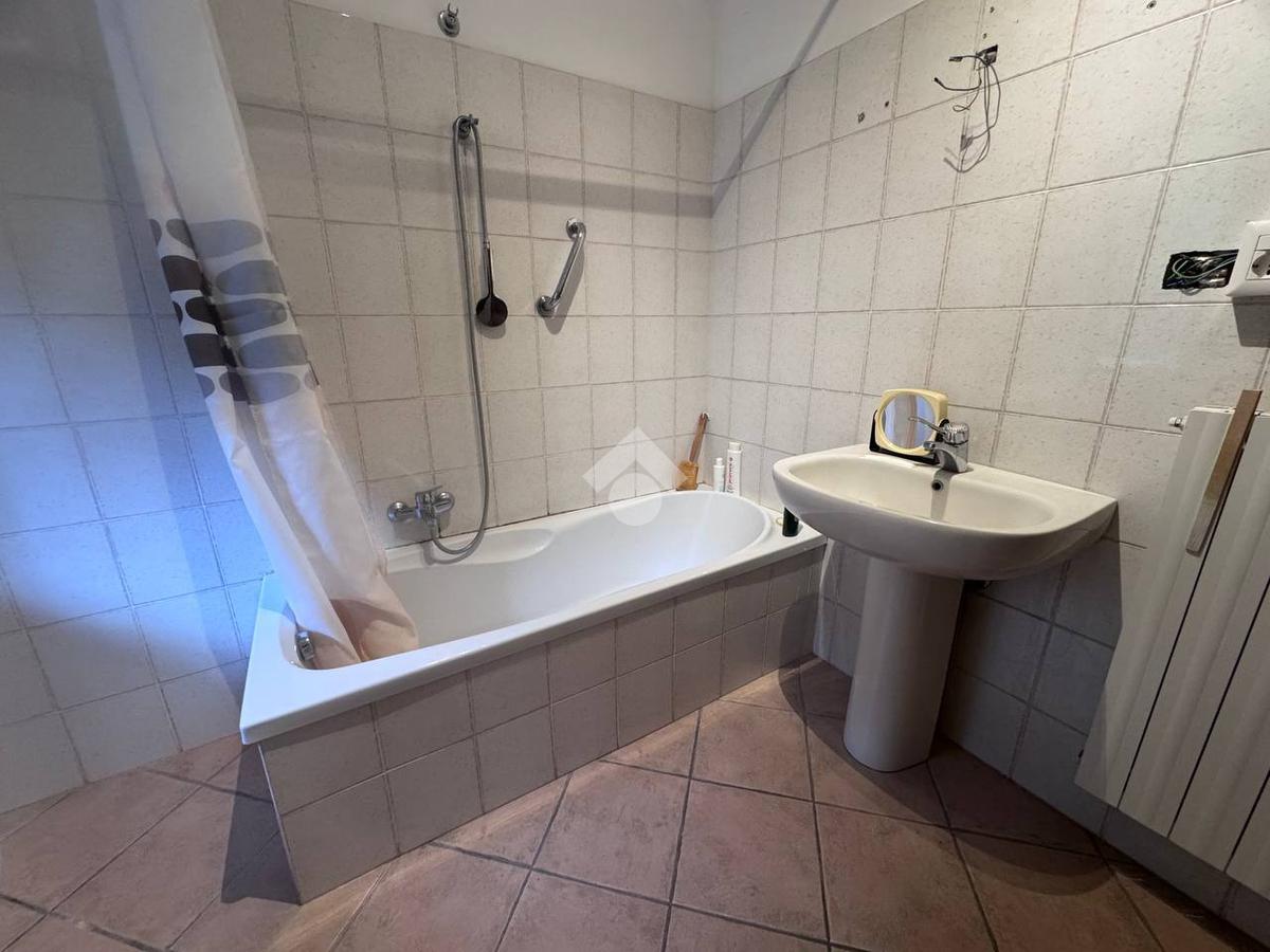 L'appartamento si compone di due locali ben distribuiti: un ampio soggiorno che si apre su una cucina a vista, creando un ambiente conviviale e luminoso, una camera da letto spaziosa e un bagno con vasca. Completa la proprietà un posto auto.